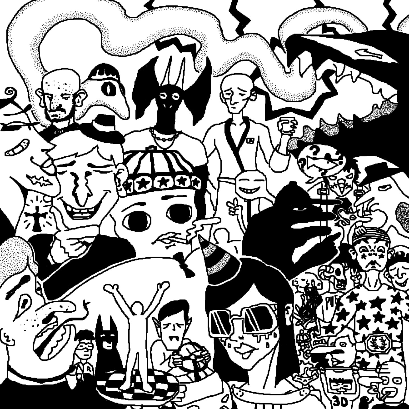 Compilation de dessins réalisés avec Paint, uniquement à la souris et au pad.